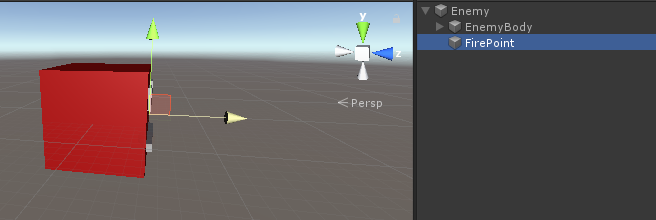 - Pentru Fire Point, creați un nou GameObject, mutați-l în interiorul instanței inamice în viață și plasați-l ușor în fața instanței, apoi atribuiți-l variabilei Fire Point: