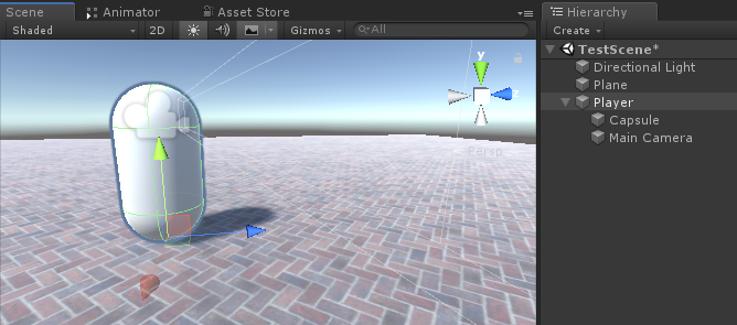 - Creați o nouă capsulă (Obiect de joc -> Obiect 3D -> Capsulă) și mutați-o în interiorul obiectului "Player"