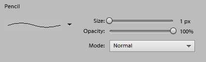 - Selectați Instrumentul creion și setați-i Dimensiunea la 1 px și Opacitatea la 100%