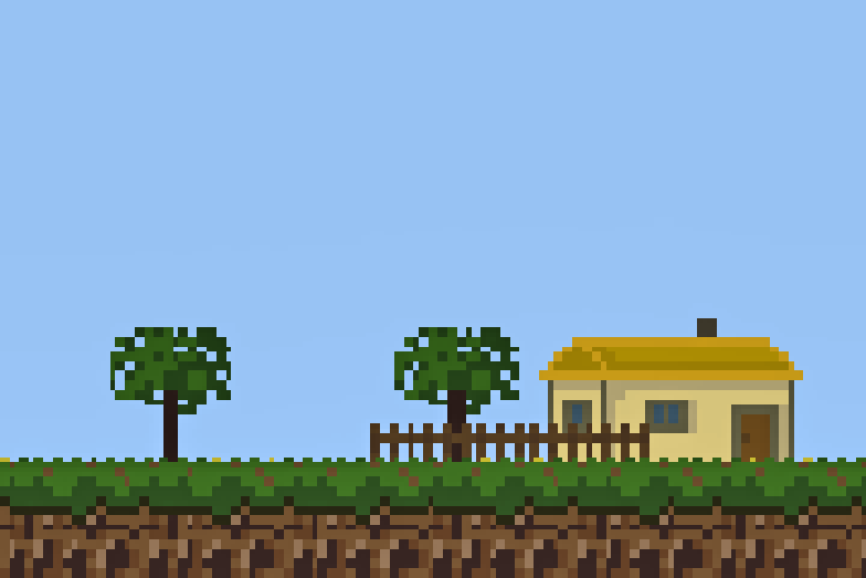 - Acum suntem gata să pictăm (voi începe prin a face o țiglă de pământ cu iarba deasupra)