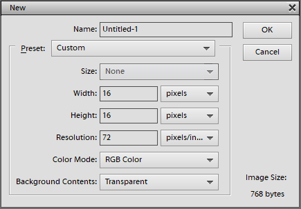 - Setați Lățimea și Înălțimea la ceva mic (În cazul meu, voi începe prin a face o plăci de pământ, astfel încât Lățimea și Înălțimea sunt setate la 16)