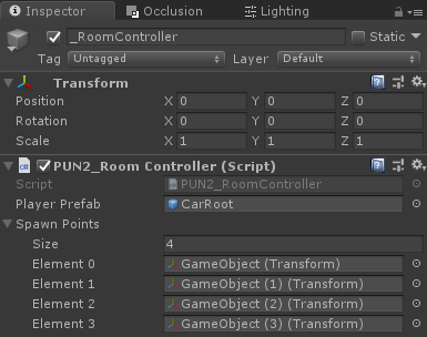 - Atașați un script PUN2_RoomController la obiectul _RoomController