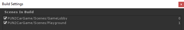 - Adăugați atât Scene GameLobby, cât și Playground la setările de construcție: