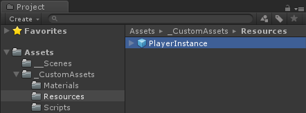 - Salvați PlayerInstance în Prefab și mutați-l în folderul numit Resurse (Dacă nu există un astfel de folder, creați unul). Acest pas este necesar pentru a putea genera obiecte multiplayer prin rețea.