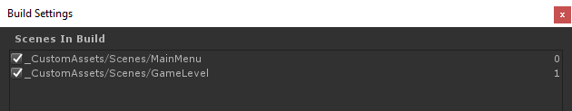 - Adăugați atât MainMenu, cât și GameLevel la setările de compilare.