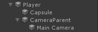 - Creați un nou GameObject și denumiți-l "CameraParent" și mutați-l în interiorul obiectului "Player", schimbați-i poziția în (0, 1.64, 0)
