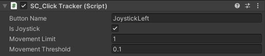 - În SC_ClickTracker setați Button Name la orice nume unic (în cazul meu l-am setat la 'JoystickLeft') și activați caseta de selectare 'Is Joystick'.