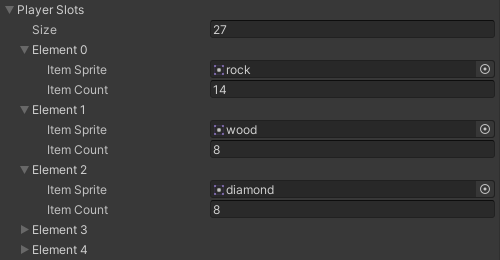 Pentru a adăuga un articol la fiecare spațiu, va trebui să atribuim un articol Sprite variabilei "Item Sprite" și să setăm "Item Count" la orice număr pozitiv (totul sub 1 și/sau articolele care nu se pot stivui vor fi interpretate ca 1):