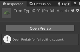 - Selectați prefabricat în vizualizarea Proiect, apoi în vizualizarea Inspector faceți clic "Open Prefab"